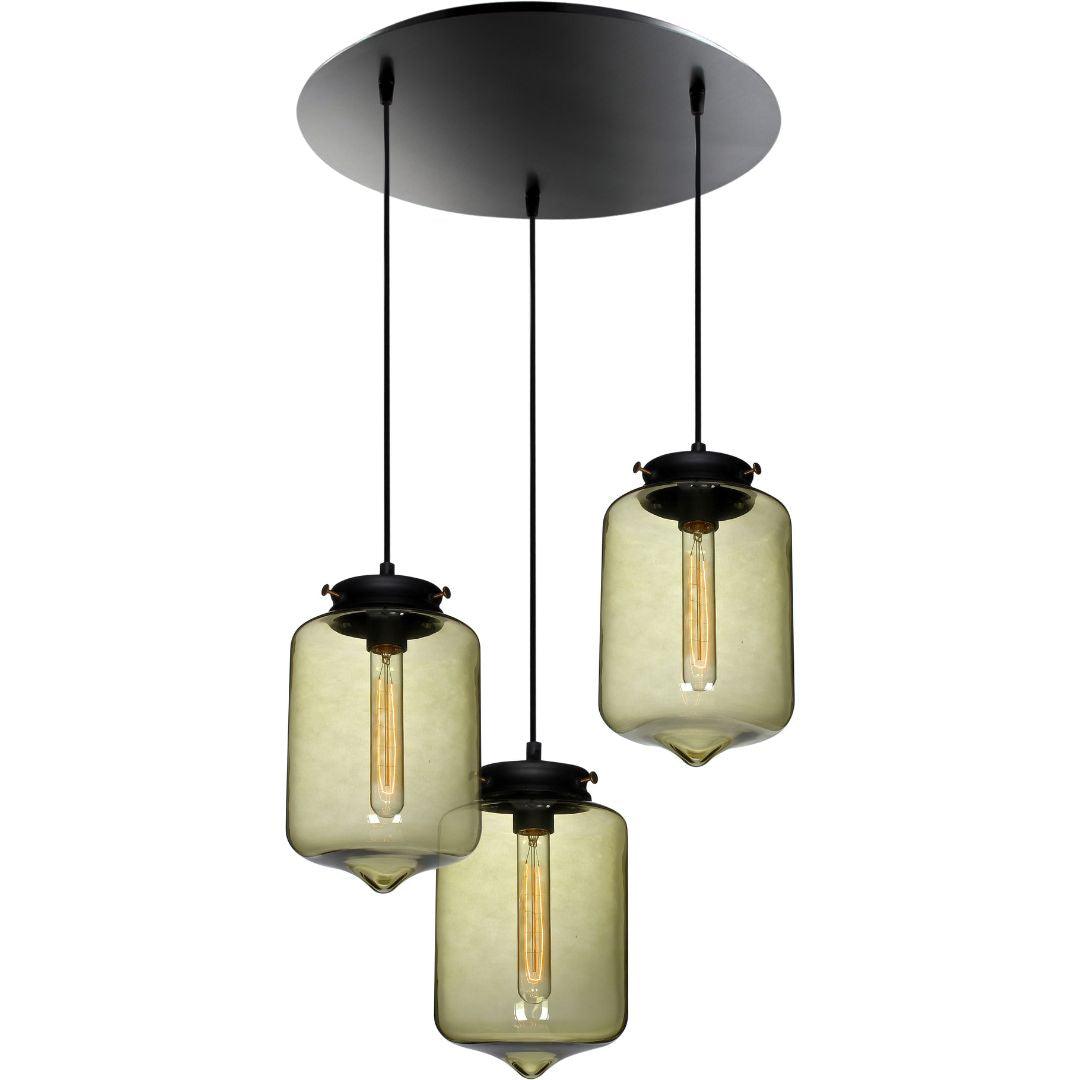 LONDON - Glass Pendant 3 Light Plate - Amber Smoke